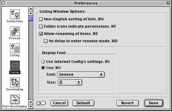 - Use Internet Config's List font settings. When selected, items in listing windows are displayed in the font and font size specified in Internet Config's List font setting.