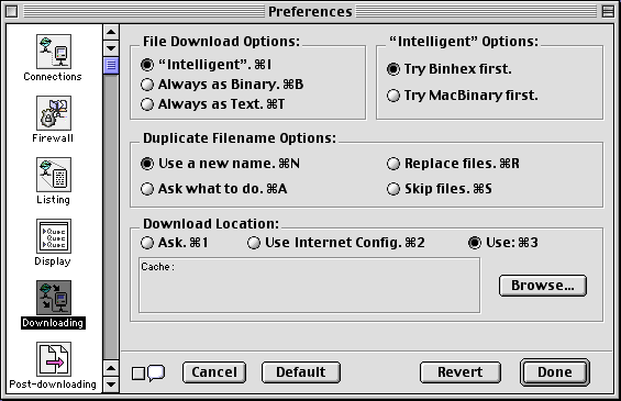 - Use Internet Config: the download location specified in Internet Config is used.